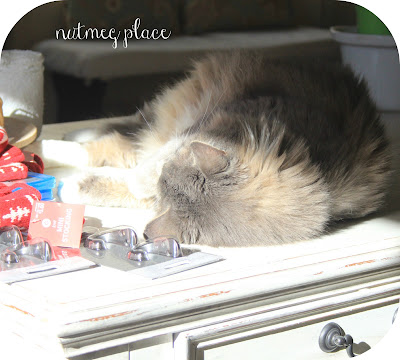 Kathy at Life on Lakeshore Drive shared this sweet candy cane wreath. I love anything made with burlap, and this is so CUTE!!