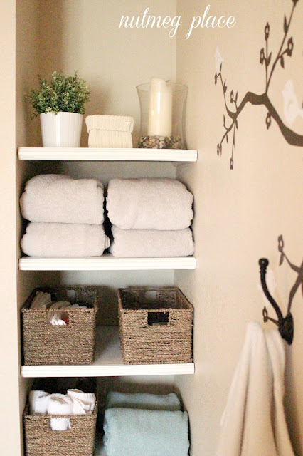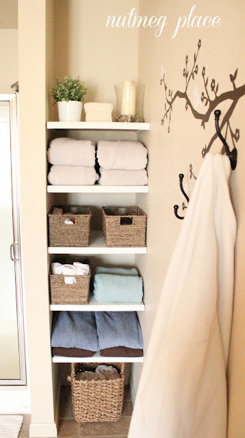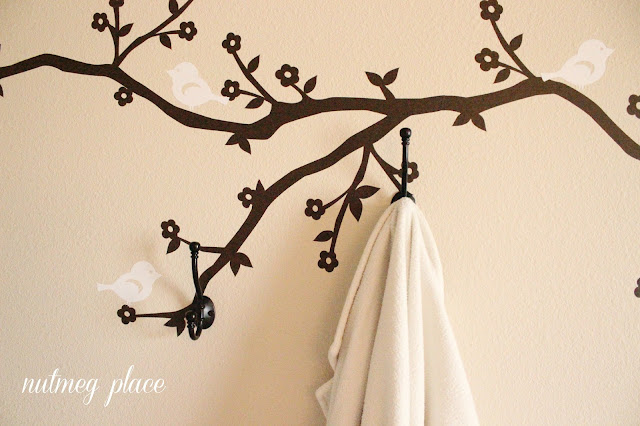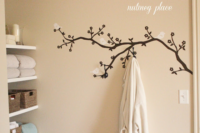 I've had the tree vinyl for awhile now, but always thought adding hooks so we could hang our bathrobes from the branches would be cute.