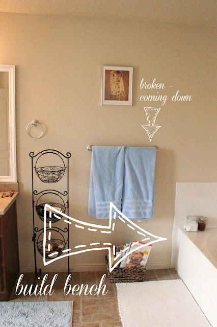 Going to build a lovely bench with board & batten behind, with hooks for towels.