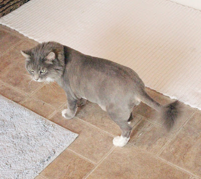 ReplyWhen we built our house we made the builders fill in that space like you have, but I now wish I could do what you did! It looks great! Even if you did have to re-do it! I like your hooks on the decal too - cute. We had a Maine Coon Cat with long hair that we used to shave like that in the summer. Max looks adorable. :-)